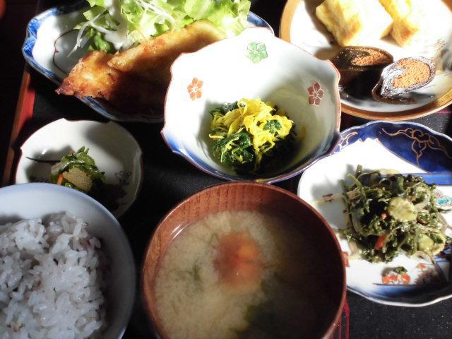 本日、ご来店のお客様には高畠町の秋の御馳走がぎっしりです・・・・・本日、美蔵の「和食」は菊のお浸し・津久茂高菜のおみ漬け・こめごめの煮物・なめこの味噌汁など高畠の味覚がたくさんお膳にのっております(^。^)vなめこも採れたてのぷりぷりで美味しいです〜