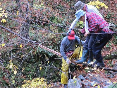 ●◆朝日連峰小国登山道吊り橋修繕のお手伝い。◆