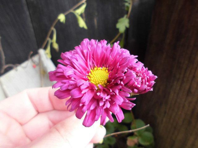 今年の春に購入した苗もので・・・気になったものがあり購入いたしました。「サラダ菊」なるもので生で食べれる菊です(^。^)vお味は・・・まだ、わかりませんが綺麗な花です