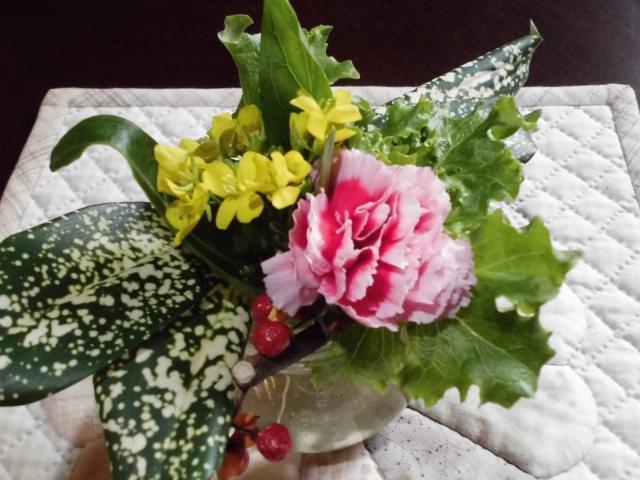 11月24日ころテーブルの花を生けたのですが・・・・・根っこがついたレタスの小さいのは、いまだに元気ですょ〜以前より成長しております(^。^)v花がない時期にレタスとアスパラ菜を何気なく置いたら以外に気が付きませんね(−。−);わがんねがった〜てよく言われます???