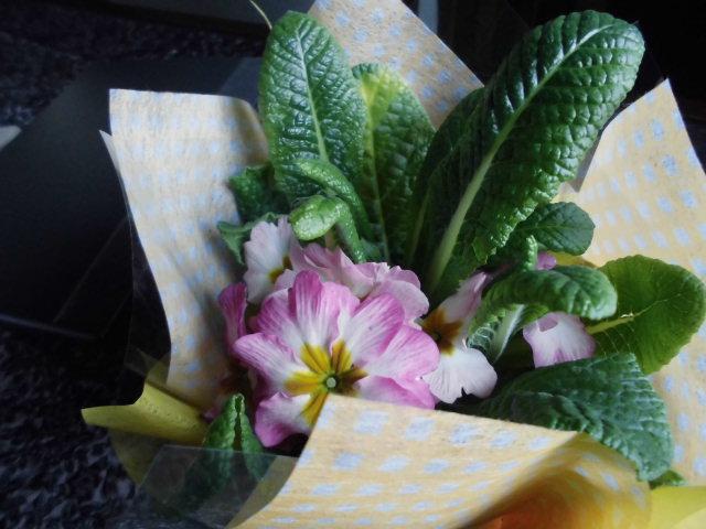 毎年、お誕生日には「お花」を頂きます。今年も可愛い「プリムラポリアンサス」です。ピンクの色でとても、いやされます(^。^)v早速 店内に飾っております〜