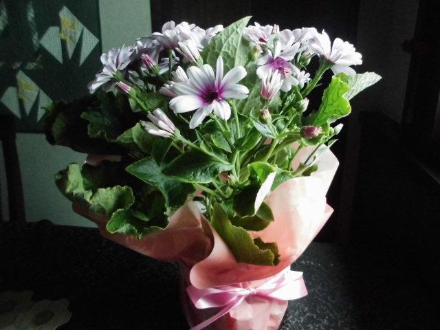 今日の高畠町は、朝から雪模様です(−。−);時折 ふぶいたりお天道様がでたり気難しい天気です。今日から明日にかけて大荒れの予報ですのでお気をつけくださいませ・・・本日は、愛車が車検に出かけておりますので美蔵の留守番と展示会に向けて作品制作したいとおもいます???でもこの雪では、除雪作業が最大のお仕事のようです(−。−); 昨日は、知り合いの方よりお誕生日プレゼントを頂きました。素敵な色の「サイネリ」です。大事に、店内に飾らせて頂きます(^。^)v私の大好きな色のお花 ありがとうございました。