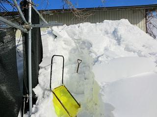 小屋の入り口が雪でふさがっていました。冬はあまり用がないのでそのまましていましたがサッシのガラス戸が壊れそうだったので除雪しました。その前と後の比較です。今日から寒波が入り込んでいます。