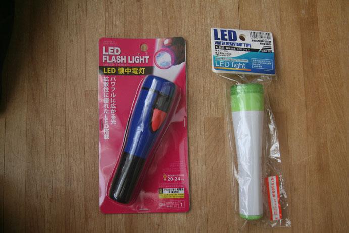 ・「LED FLASH LIGHT/LED懐中電灯」(ダイソー) D011 K-14-P12