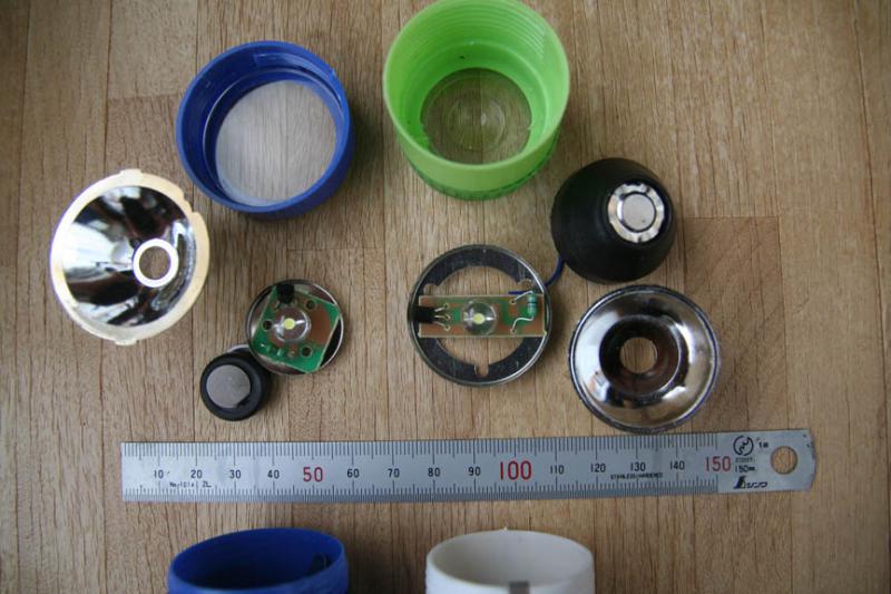 100均ショップで扱われているLEDライトは、今まで直径5mmの砲弾型LEDが使用されているものでしたが、最近になり直径8mmの大型のLEDを使用したライトが見られるようになりました。