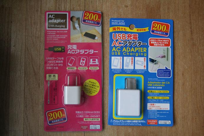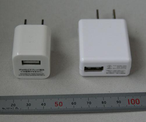 パッケージには、両者とも入力電圧は100〜240Vで海外でも使用可能、出力がDC5V,1000mA(1A)という表示がある。