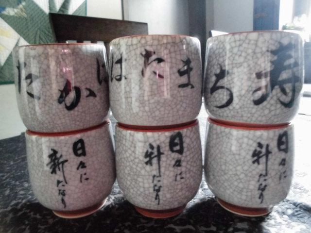 いや〜!!昔の食器をしまっているところでゴソゴソ探し物をしていたら・・・・あれ???「たかはたまち」の名前が入った湯呑が10個みつかり只今、お茶をおだしするときに使っております(^。^)vこれは、かれこれ??30年前の敬老会の引きものだったようです。1度も使われていないので綺麗ですよ〜
