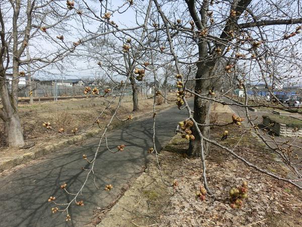 まほろばの緑道の桜開花はもう間近です゜ヽ(o ・悋o)ノ゜.。+つぼみもだんだんと大きくなってきましたよ☆