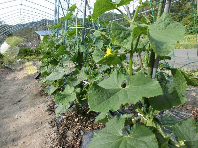 美蔵の畑では、今 きゅうりのの花が咲いてあと少しで収穫できそうです(^。^)vなかなか、雨が少なく病気にならなくていいのですが・・・・・水やりが大変です(>。<)