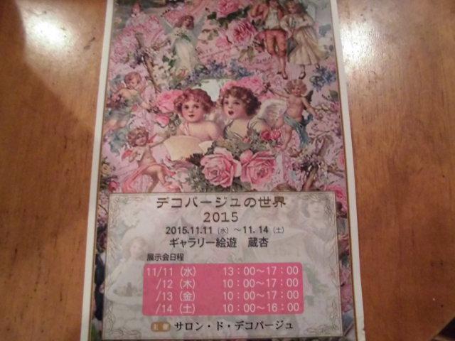 今日 11/11(水)〜11/14(土)まで山形市のギャラリー絵遊 蔵杏で「デコパージュの世界」展が開催されます。お近くの方は、ぜひ 足を運んでください。フランスの伝統的な技能で素敵な世界が山形で見れます。素敵ですょ〜(今年は、忙しく作品の参加ができませんでした(−。−):)