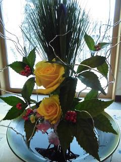 今年、最後の生け花のお稽古はお正月用洋風生けでした〜だいおうまつ・千両・アイリス・スイートピー・銀柳どに?飾ろうかな・・・・・(^^♪