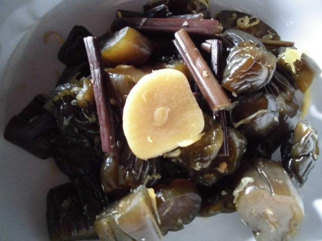 さっき、いつもお世話になってる設備屋さんが「お〜うめものかせる」と大きな袋をもってやってきました(^。^)vなんだか?宮城県七ヶ宿町の伝統料理だとか???むこうのばぁちゃん達の手作りのお漬物でそこの家そこの家で微妙な味かげんがあるのとかだそうです。使用している材料も最高級品で作っているので味は最高に美味しいですうまくて、手がとまりません。たぶん、夜ならお酒が止まらなくなりそうです(^^♪