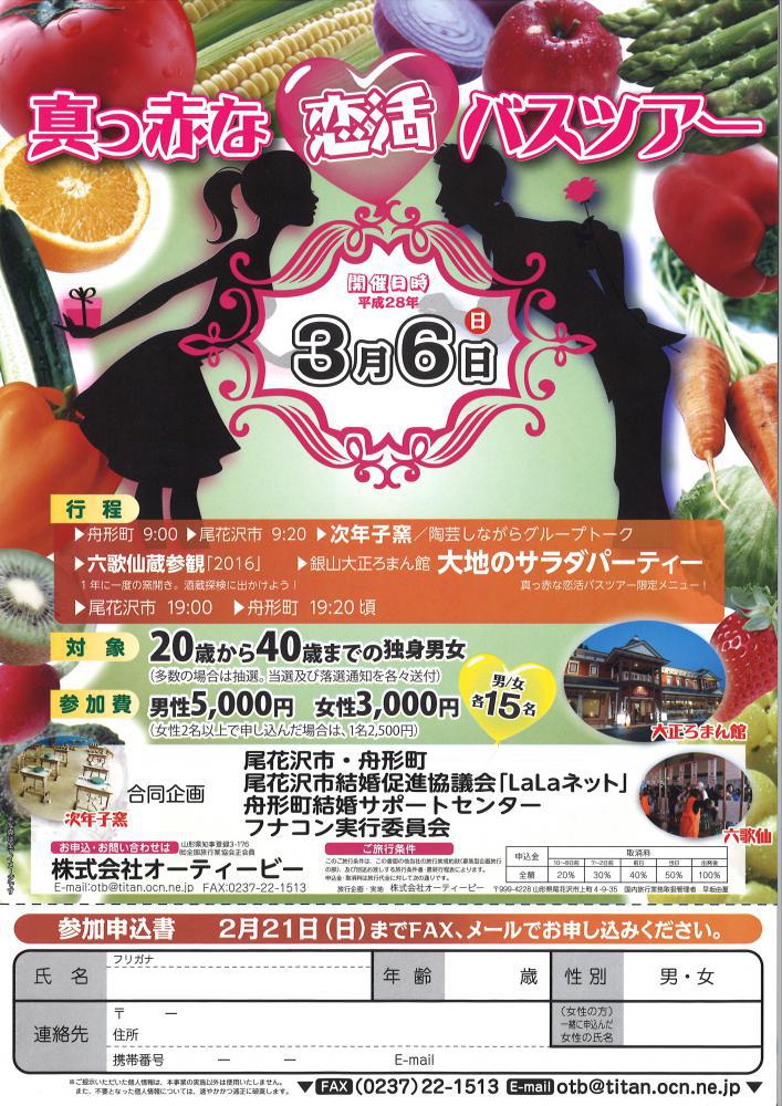 お世話様です〜先週は春の足音が聞こえたかと思ったのですが、今日は一変してまた冬に逆戻りしたかのような天気ですね(;´・ω・)さて先日3月6日(日)に行われる真っ赤な恋活バスツアーの下見に行ってきました!! 訪れたのは陶芸をする予定の"次年子窯"です。次年子釜は旧次年子小学校で、円形校舎の珍しい作りをしていました(゚Д゚ !!)教室は陶芸室やギャラリーとして利用されており、懐かしさの中にも斬新さを兼ね備えた建物でした。 3階には体育館があり、週末などは周囲の子どもたちが遊びに来たりするそうです。廃校になった今も地域に愛されている校舎なんて素敵ですね?一般にも陶芸教室を開催しているそうなので、陶芸に興味のある方は是非一度足を運んでみてはいかがですか?http://www.jinengo-gama.jp/studio次年子窯を利用するイベントは?真っ赤な恋活バスツアー?日時:3月6日(日)9:00〜場所:次年子窯?六歌仙蔵参観?銀山大正ろまん館対象:20歳〜40歳までの独身の男女参加費:男性5,000円 女性3,000円(女性2名以上でお申込みの場合は一名2,500円)※応募多数の場合は抽選となります。↓↓↓お問合せは↓↓↓舟形町結婚サポートセンターTel : 0233-32-1152Fax : 0233-32-1153Mail : funakon@funagata.info