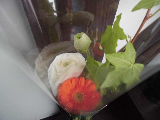 1月中頃、パッチワーク教室の生徒さんより頂いた「らなんきゅらす・ガーベラ・アイビー」の切り花なんですが、以外に長持ちしております(^。^)vガーベラはやはり早めに傷んでダメになりましたが、らなんきゅらすは満開過ぎてますがもっております(^。^)vそろそろ、次のお花を飾らなければ・・・・・(^^♪