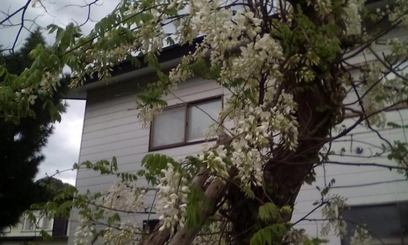 今日は、風がものすごく強いです。バケツが勝手に転がったり、薔薇の鉢植えも転がっています。お出掛けには、お気をつけくださいませ(^_-)-☆白い藤の花が今 咲いてます(*^^)v風 ユラユラゆられてます~