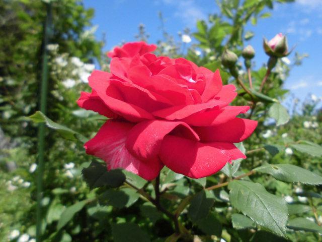 今日、美蔵の庭にでてみたら真っ赤な「薔薇」の花が咲いておりました(^。^)v今年は、いつになく花芽がいっぱいついており全部 咲くのが楽しみです。真っ白い「薔薇」も咲き始めております(^^♪