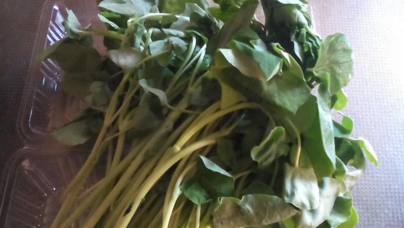 今日のお楽しみ小鉢は……今が食べ頃の「蕎麦の葉ぱのからしびだし」です。シャキシャキして美味しいですよ~