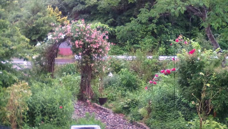ここ最近は、気温が?30゜近くまであり蒸し暑かったですが、今日は、雨模様で過ごし易いてんきです(●^o^●)美蔵の庭も花達は、雨に大喜びですが………雑草は、ものすごいいきおいでのびてます(_ _;)少し雨上がりに刈らないといけないなぁ~