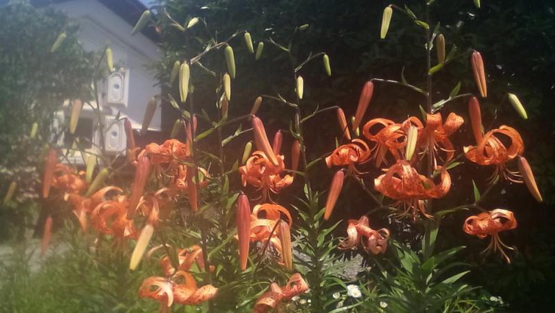 いつのまにか?山ゆり?おにゆり?が満開になってきました。オレンジの鮮やかな花で草丈も1.5mもありとても見応えがあります(*^^)v