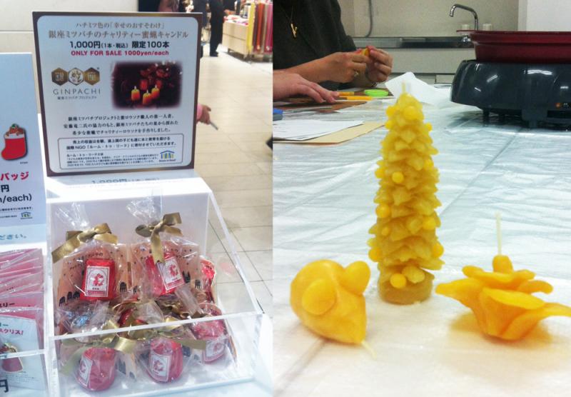 12/15 松屋銀座店さんにお呼びいただき、銀座で採れた蜜蝋でWSをしてきました。うちの蜜蝋も協賛して、大都会産と原生自然産のコラボ。銀座みつばちPJの養蜂家山本なお子さんから都心の蜜源や活動についてのお話も聞けました。ハチ蜜の森キャンドル製の銀座産チャリティー蜜蝋キャンドルも、正面入口で販売されていました! これは、だいぶ売れちゃったそうなのでお急ぎください😊