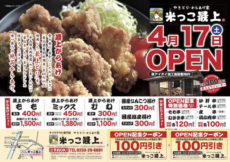 ●やきとり・からあげ家「米っこ最上」4/17(土)OPEN!!
