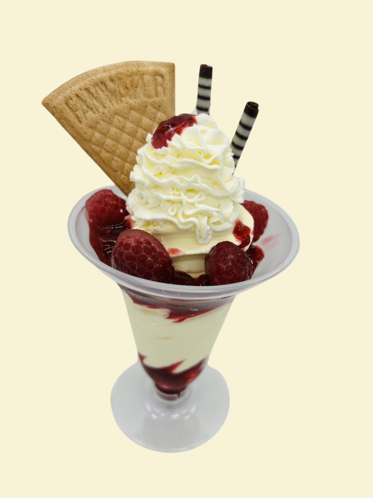 ●ラズベリーパフェ864円甘酸っぱいラズベリーソースと濃厚バニラとの相性は抜群です