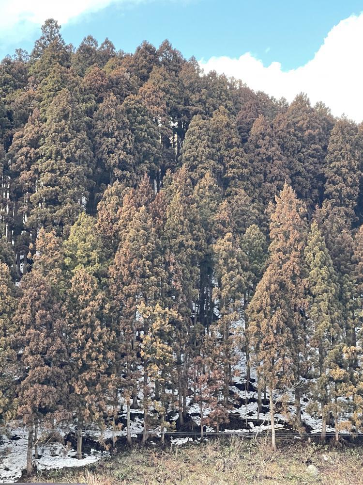 瀬見の山々、残雪がありとても綺麗です。しかし、杉の木真っ赤です。くしゃみ、涙が止まりません。マスク、目薬、飲み薬等、必須のアイテムです。
