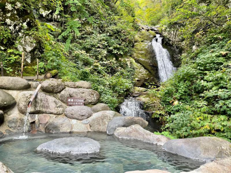冬季は雪で滝も岩も埋もれるこの場所10月末(ギリ11月上旬)まで楽しめます。新高湯温泉 五つの絶景露天風呂 吾妻屋旅館