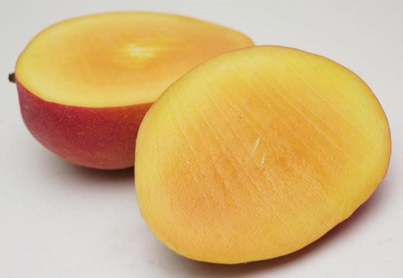 メキシコの太陽をたくさん浴びて育ったマンゴー樹上で熟させたマンゴーを航空便でで日本へ。滑らかな果肉、濃厚な甘さ、安定したおいしさを保つことが出来るようになりました。濃厚な味わいと香り、燦々と輝くメキシコの太陽を感じます。 空飛ぶマンゴー「VENUS」のシール、飛行幾がマンゴーをかかえています。空輸することによって、格段と美味しくなったマンゴーを表しています。 鮮やかなオレンジ色の果肉です♪シーズンはじめは、繊維質をやや多く含むマイルドな甘さのヘイデン種からスタートします。ケント種にかわると、芳醇な風味と甘さ、とろけるような舌触りの果肉になります。 肉厚のマンゴーならでは!マンゴーといえば、このカット!肉厚の果肉ゆえに迫力満点です。 マンゴーは中央に平らな種があります種の左右をカットします。(マンゴーの三枚おろし^o^)「種の部分はどうしたらいいですか?」とよくきかれます。「切る人の特権です。どうぞしゃぶりついて下さい。」とお答えしています♪ 購入ページにもどる