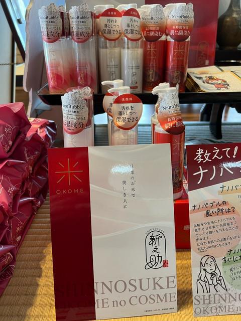 米沢と歴史親善友好都市になっている南魚沼市、そのつながりから紹介いただいたのが、こちらの新之助コスメです。新之助とは新潟県が7年かけて開発したブランド米で、その米エキスを配合して作られた商品になります。ぜひ、ご購入ください〜
