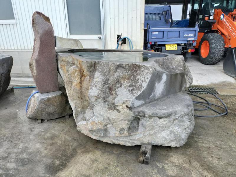 かっこいい石風呂です。角ばっている部分が多いため単体で見ると荒々しさもありますが、設置する場所の雰囲気によってはまた違った印象になることもあります。高さがある場合は写真のように階段を付けることも可能です。水を汲み上げて風呂に注水するための設備も蔵王石で製作可能です。 原料:蔵王石(安山岩)入浴可能人数(目安):1、2人展示場にて展示中 一つとして同じ表情の無い蔵王の天然石から削り出す石風呂。永い年月の中で石に蓄えられたパワーは心と身体に癒しを与えてくれます。____それはまさに自然からの贈り物。株式会社ざおうコーポレーション 石材部門では蔵王の天然石を使った石風呂を制作・販売しています。ご興味がございましたらぜひ一度展示場へお越しください。https://zao-stone.jp