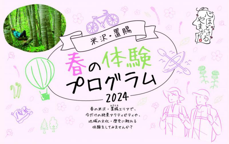 春の米沢・置賜エリアで、今だけの絶景アクティビティや、地域の文化・歴史に触れる体験をしてみませんか? 詳細はこちら(PDF) おきたまの絶景アクティビティ熊野山 絶景!夜明けトレック (長井市)熊野山から望む絶景の散居集落の風景は、朝日が田んぼの水鏡に反射し、全体が朱に染まります。日の出後は、爽やかな早朝トレッキングをお楽しみください。下山後は、地元米屋さんのおにぎりや地元銘菓のお振舞も好評です。 実施期間/5月17日(金)〜6月2日(日) 毎週金・土・日開催 申込締切/各日3日前まで(要申込) 体験料/大人4,400円(税込)、小人(高校生以下)2,200円(税込) 時間/早朝2時50分〜7時頃まで 定員/12名(最小催行人数3名) 集合場所/道照寺平スキー場ロッジ 主催・問合せ/一般社団法人やまがたアルカディア観光局 TEL.0238-88-1831 予約/https://tour.arcadia-kanko.jp/products/detail/272白川湖の水没林カヌーツアー (飯豊町)3月下旬〜5月中旬頃、“白川湖の水没林”の絶景の中をカヌーで散策するツアーです。経験豊富なガイドがパドルの使い方から丁寧にご案内しますので、初心者の方やお子様連れのファミリーでも安心してお楽しみいただけます。 実施期間/3月下旬〜5月中旬 申込締切/当日朝5時まで 体験料/大人7,000円〜、高校生以下5,000円〜 時間/1日基本5回実施 各回90分 定員/各回20名程度 集合場所/白川温泉白川荘裏手 カヌー小屋前、各回10分前から受付 主催・問合せ/いいでカヌークラブ TEL.050-5832-7512 予約/https://www.iide3.net/suibotsurinブナの森 温身平(ぬくみだいら)リトリートツアー (小国町)癒しの効果が科学的に認められた温身平は、忙しい日常から離れ心と体をリラックスさせるのにピッタリ。森の中でお昼寝をしたり、のんびりティータイムを楽しんだりと、五感を解放して雄大な自然を感じてみませんか。地元の美味しいランチ付き。 実施期間/6月中旬〜11月上旬 申込締切/希望日の3日前まで 体験料/1名 15,000円/人、2名〜 9,800円/人 時間/約5時間 定員/1名から予約可 集合場所/飯豊山荘 主催・問合せ/小国町森林セラピーアテンダント ミーティング事務局 TEL.0238-62-5130 予約/https://tour.arcadia-kanko.jp/user_data/nukumi_retreatながい百秋湖ボートツーリング 絶景・三淵渓谷通り抜け参拝 (長井市)ながい百秋湖を船外機付きゴムボートで楽しむ新たなレジャー。龍神伝説の舞台となった秘境・三淵渓谷を巡る約1時間の船旅です。 実施期間/4月〜11月 申込締切/当日空きがあれば対応可ですが、事前予約をおすすめします 体験料/1艘貸切 6名まで 15,000円、1艘貸切 10名まで 25,000円 時間/約1時間 定員/1艘貸切 6名まで、1艘貸切 10名まで 集合場所/長井ダム(ながい百秋湖)合地沢湖面広場 主催・問合せ/(特)最上川リバーツーリズム ネットワーク(野川まなび館内) TEL.0238-87-0605 予約/公式HPをご確認の上、お電話でご予約ください HP/https://manabikan.wixsite.com/boatE-BIKE(電動レンタサイクル) (米沢市)米沢駅ASK、上杉伯爵邸(和庭)、道の駅 米沢の3施設において、電動アシスト機能付き自転車(E-BIKE)を貸出しております。E-BIKEに乗って、米沢の魅力発見の旅に出かけてみませんか? 実施期間/4月中旬〜11月下旬(9:00〜17:00) 申込締切/当日まで 体験料/4時間以内1,000円、4時間を超えて8時間以内2,000円 定員/各施設10〜15台貸出可能 貸出場所/ ・JR米沢駅 置賜広域観光案内センターASK ・上杉伯爵邸 和庭 ・道の駅米沢総合観光案内所 主催・問合せ/米沢市役所観光課 TEL.0238-22-5111 予約/各貸出施設で直接お手続きください。 (事前予約可。身分証等の提示をお願いします。) HP/https://e-bike.yamap.com/yonezawa/十分一山 気球フライト体験 (南陽市)十分一山は、天候に恵まれると置賜盆地が一望できるスポット。その景色を気球に乗って体験してみませんか。バーナーの熱で徐々に高度を上げ、ふわりと空に浮かぶ感覚は、気球ならではの楽しみ。「搭乗のみ」の体験のほかに、準備から片付けまで体験できる「フル参加」のコースもご用意しています。 実施期間/定期開催中 ※詳しくは予約サイトを参照 申込締切/(WEB)希望日の前日まで(電話)当日も空きがあれば対応可 体験料/大人(18歳以上)4,000円〜、高校生以下(18歳以下)2,000円〜 時間/30分(受付〜搭乗まで込みの目安時間) 定員/何名でも可 最少催行人数/10名 集合場所/ 十分一山展望台 主催・問合せ/YAMAGATA EXPERIENCE TEL.050-5832-7512 予約/https://yamagata-ex.com/ 世界にひとつだけの作品を作ろう!陶芸体験 (白鷹町)のどかな里山に囲まれた深山工房で、電動ロクロや手びねり、絵付け等を体験できます。豊かな自然の中でのんびりと自分だけの湯飲みや茶碗をつくってみませんか。 実施期間/4月上旬〜12月上旬 申込締切/希望日の2〜3日前まで 体験料/電動ロクロ 3,300円、手びねり 2,200円、絵付け 湯飲み茶椀2,200円、5寸皿 2,600円 時間/電動ロクロ 2時間、手びねり 1時間30分、絵付け、15分〜1時間 定員/最少催行人数 2人 備考/焼き上がりまでは1か月半〜2か月程度、作品は梱包して着払いにて配送いたします 主催・問合せ/深山焼深山工房つち団子 住所:白鷹町大字深山2530 TEL.090-