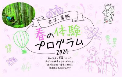 春の米沢・置賜エリアで、今だけの絶景アクティビティや、地域の文化・歴史に触れる体験をしてみませんか? 【おきたまの絶景アクティビティ】◇米沢市 E-BIKE(電動レンタサイクル)米沢駅ASK、上杉伯爵邸(和庭)、道の駅米沢の3施設において、電動アシスト機能付き自転車(E-BIKE)を貸出しております。E-BIKEに乗って、米沢の魅力発見の旅に出かけてみませんか?・実施期間:4月中旬〜11月下旬(9:00〜17:00)・申込締切:当日まで・体験料:4時間以内 1,000円      4時間を超えて8時間以内 2,000円・定 員:各施設10〜15台貸出可能・貸出場所:JR米沢駅置賜広域観光案内センターASK      上杉伯爵邸 和庭      道の駅米沢総合観光案内所・予約方法:各貸出施設で直接お手続きください。     (事前予約可。身分証等の提示をお願いします。)・主管、問合せ:米沢市役所観光課 TEL:0238-22-5111  ◇長井市 熊野山絶景!夜明けトレック◇長井市 ながい百秋湖ボートツーリング 絶景・三淵渓谷通り抜け参拝◇飯豊町 白川湖の水没林カヌーツアー◇小国町 ブナの森温身平 リトリートツアー◇南陽市 十分一山 気球フライト体験 【世界にひとつだけの作品を作ろう!】◇米沢市 とんぼ玉制作体験とんぼ玉を2個制作していただき、内1個は無料でアクセサリー加工いたします。手作りのとんぼ玉や民芸和紙の他、猫雑貨も豊富に取り揃えており、にゃんこ玉ブレスレットなどアクセサリー作りも可能です。・実施期間:通年(定休日:日曜日)・申込締切:希望日の前日まで(電話予約は、当日まで)・体験料:小学6年生以上 2,200円・時 間:約2時間(制作時間が約40分、冷却のための待ち時間が1時間、その後アクセサリー加工)・定 員:1名から予約可、オンライン予約は4名まで。5名以上は電話で問合せ必要。・主催、問合せ:とんぼ玉と民芸和紙 大和屋 TEL:0238-23-1118 ◇白鷹町 陶芸体験◇白鷹町 紅花染め体験 【おきたまの歴史・伝統に触れる】◇南陽市 熊野大社で巫女体験◇高畠町 新緑の古道トレッキング 【春の恵みが待ってるよ!】◇小国町 観光ワラビ園◇川西町 わらび採り◇飯豊町 いちご狩り◇高畠町 さくらんぼ狩り 米沢市以外の詳細はこちらをご覧ください。PDFはこちらをご覧ください。 ※その他にも体験メニューが盛りだくさん! 米沢・置賜の体験プランは「やまがたへの旅(山形県公式観光サイト)」をご覧ください。