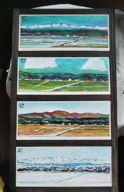相模原市の絵画サークル”どんぐり”のグループ展は今日から6日まで町田の版画美術館で開催です、今年はこの”飯豊山遠望・春夏秋冬”と、”越後瞽女”、”獅子舞巡行”、”愛し故郷・豊穣の秋”です。
