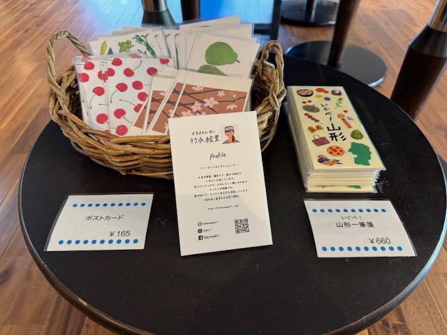 先日、ご紹介で竹永さんと出会いました。いろんな作品を見させていただき、当館でポストカードと一筆箋を販売することにしました。ぜひ、旅のお土産にご購入いただければと思います。竹永さんはどんな方なのかと気になった方は下記、リンクをご覧ください〜 イラストレーター 竹永絵里(たけながえり) (takenagaeri.com)