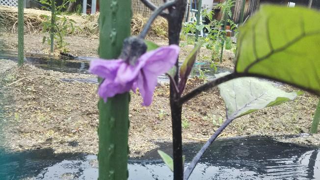 苗で買って植えたナスの花が咲いてます、我が家の家庭菜園で植えた今年のナスは、3種で合わせて5本植えました。夏から秋遅くまでなります、盛夏の茄子漬けはいいですね、ほかにも焼く、炒める、煮る、揚げる、どんな調理もおいしくいただけます