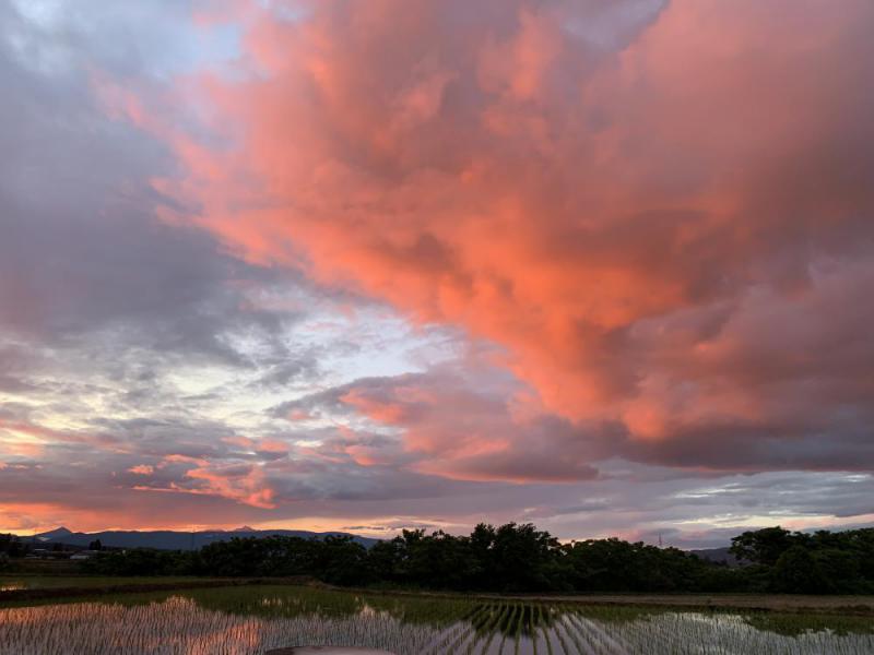 今日の夕陽はすごかった。東の方には大きな虹がでていたし…15分はながめていたかな。