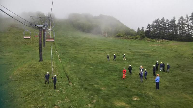 毎年、天元台高原では、夏山シーズンとウィンターシーズンのオープン前の、年2回、リフトとロープウエイの救助訓練を行っている、リフトもロープウエイも停電の時は、モータ代わりにディーゼルエンジンがあり、そのエンジン操作や原動モータからエンジンへ切り替え操作を行う訓練と、物理的な装置故障発生を想定したロープでの救助訓練をリフトおよびロープウエイで行っている。もしかの時の備え、大事ですよね・・今日で整備期間終了で、明日安全祈願祭そして、終了後プレオープン、明後日から通常営業夏山シーズンが始まる。