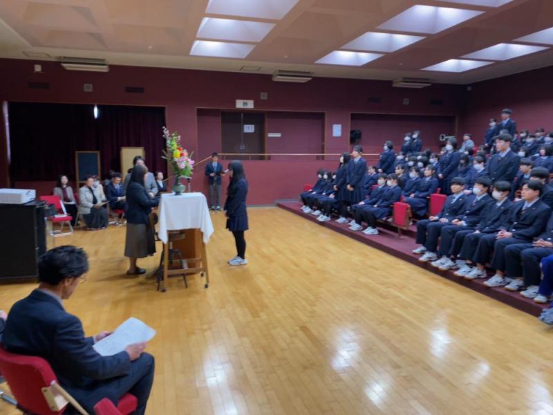 令和6年同窓会入会式が、令和6年2月29日(木)九里学園教育センターホールにて行われました。令和5年度卒業生122名を新会員として迎えることができました。同窓会についての紹介に続き、新会員代表挨拶を勝見薫さんから、新会員へのメッセージを昨年の卒業生からいただきました。新会員皆さまのご活躍を願っております!そして、これから共に活動できることを楽しみにしています。