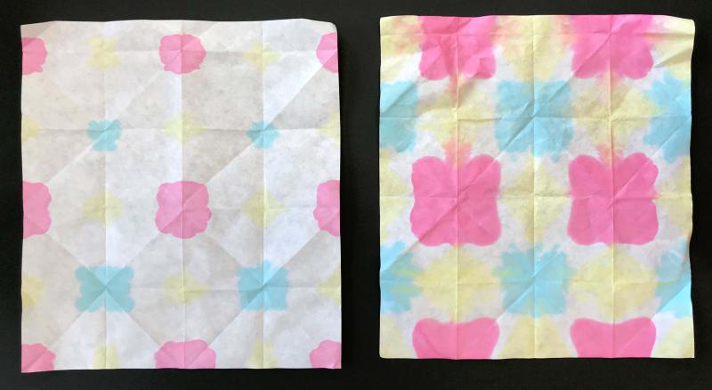 8月の体験学習室についてお知らせいたします。季節企画は「盂蘭盆会」(7/26(金)〜8/21(水))です。造形体験は「折ってぽたぽたかみのおりぞめ」(7/26(金)〜8/21(水))です。おりぞめは人気プログラムのひとつ。簡単にきれいな模様ができるので、お子様はもちろん、大人も夢中になって制作しています。開くまでどんな模様になったのか分からないのもおりぞめの魅力です。偶然できる模様を楽しんでください。 ※ご利用の際は感染予防にご協力ください。※発熱や、風邪症状のある方はご利用をお控えください。※5人以上のグループでのご利用は、事前にご相談ください。※定員は20名です。混雑時はお待ちいただくこともございます。それではご来館を心よりお待ちしております。お問い合わせは 米沢市上杉博物館0238-26-8001までどうぞ。