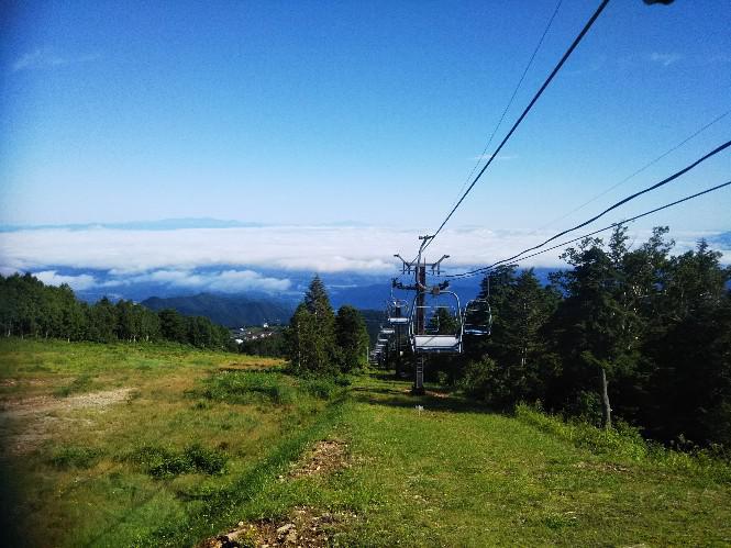 昨日の朝、8時頃から9時代は置賜盆地が雲海に包まれてました・・第三リフト乗り場1590mから朝日に月山、鳥海まで見えてとても涼しくいい気持ち、写真では伝わりませんがもっと空青く、山もくっきり見えるのですが・・写真2枚目はロープウエイから兜山、右奥に朝日連峰が見える