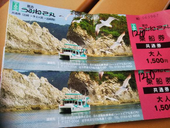お盆休みの三陸旅、行きたかった浄土浜をめぐる遊覧船に乗ってきた、「道の駅みやこ」「みなとオアシスみやこ」で乗船券を購入、宮古道の駅「出崎埠頭」から 「浄土ヶ浜 (桟橋)」 2つの発着所から折り返しで大人1500円、道の駅と浄土浜のどちらからも乗船すね・・道の駅出崎埠頭から出航し、 国の指定 名勝「浄土ヶ浜」を ガイドとめぐる遊覧船です。展望デッキから眺める大パノラマの 太平洋やウミネコがわんさかやってくる・・パンは船内で販売してましたが、事前に買っていたのがあったので・・それを投げるとうまくキャッチしてくれます・・行きはお客がくれるとわかって船に群がるが帰りはくれないとわかっていて船に寄ってこないでいるのには驚き・・慣れてるのねー・・浜の数々の奇岩、迫力満点の景色でした。