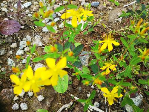 天元台高原、ゲレンデで咲くオトギリソウです。漢字で書くと「弟切草」・・いわれが、鷹の傷を治す薬草の秘密を漏らした弟を兄が切り、その血しぶきが葉や花の黒点として残った、という話があります。実際に止血などの薬効もあるようです。北海道から九州および朝鮮半島、サハリンに生える多年草。山地、丘陵地、土手や草原などで普通にみられるはなであるが、変化が非常に多く、各地の固有種があるのだそうです・・標高の違うところで咲く花も違があるか観察するのも面白いですね