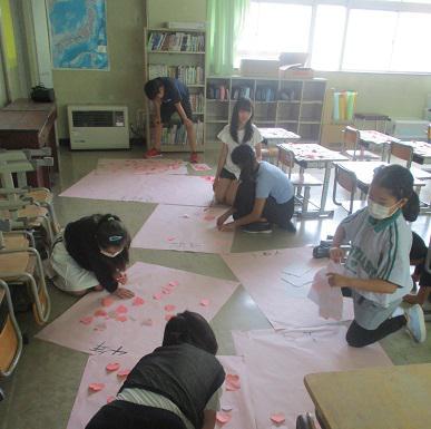 今朝の運営委員会の活動。ハートフル活動のメッセージを、個人ごとに渡す準備をしています。一つ、じ〜んとくることがありました。運営委員会の皆さんが、「メッセージ少なかった人に私たちが書こう!」と、机に向かっていたのです。なんと! 打って変わって2年生。運動会の歌で大盛り上がり!うふふ。 4年生は、月と太陽の位置の勉強。三日月は、空に何時間くらい見えているかご存じですか?月の満ち欠け表と頭を使い、納得しながら進めました! 5年生、英語のリスニング。何度聞いてもWakaba soup にしか聞こえず・・・。正体は、Wakaba zoo 。日本語と英語が混ざっていると、笑ってしまう単語に聞こえてしますんですね。でも、おしかったではないですか!みんなの顔が、バッチグ〜! 今日から始まった運動会準備。装飾係、赤組と白組の心中は・・・? 実行委員会の心の中は…?運動会が熱く燃えるものになるように、それぞれのチームが工夫しています。 全ての場面の空気を、どうぞご想像あれ!どれも味わい深いものですね。