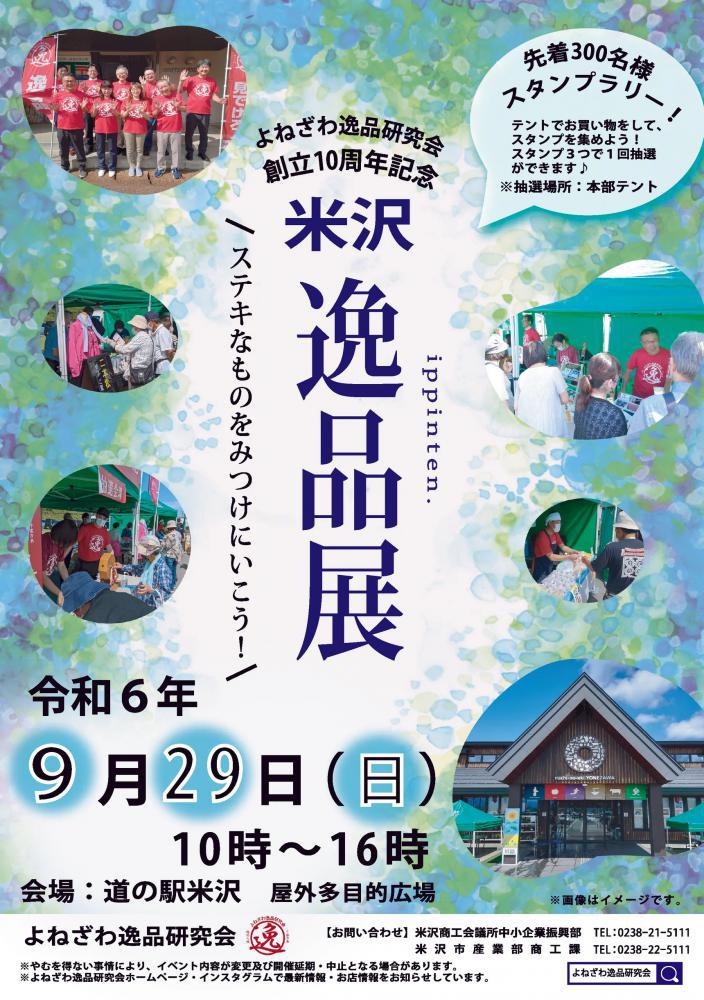 米沢逸品展 9/29(日)道の駅米沢で開催!今年も「米沢逸品展」を開催いたします!各参加店の「おススメ」や「イチ押し」の商品・サービスを取り揃え、展示・販売いたします!米沢市の「逸品」が、一堂に会する1日です。数に限りがある商品もございます。ご来場はお早めに!※同日「なせばなる秋まつり(松が岬公園・伝国の杜周辺)」開催!秋まつりチラシ◇日 時:9月29日(日) 10:00〜16:00◇場 所:道の駅米沢 屋外多目的広場◇お問い合わせ 米沢商工会議所中小企業振興部 TEL:0238-21-5111米沢市産業部商工課 TEL:0238-22-5111