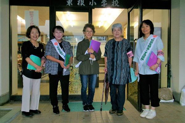 9月20日(金)、朝から大雨に見舞われ、登校する子供たちも心なしか気分が重い様子でした。そのような中、子供たちの登校に合わせて、更生保護女性会の皆様による挨拶運動が行われました。明るく爽やかな挨拶で子供たちを迎えていただき、雨のじっとりとした雰囲気を吹き飛ばしてくださいました!今年度も登校する児童一人一人に温かな声がけとクリアファイルを頂戴するとともに、雑巾31枚を寄贈いただきました。どちらも大切に使わせていただきます。ありがとうございました!