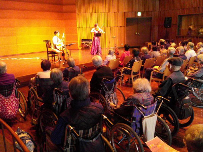 10/9(水)あゆーむで行われた音楽会に招待していただき、皆様と共に参加してきました。ヴァイオリンとギターによる演奏に癒され、癒しのひとときを過ごさせて頂きました。