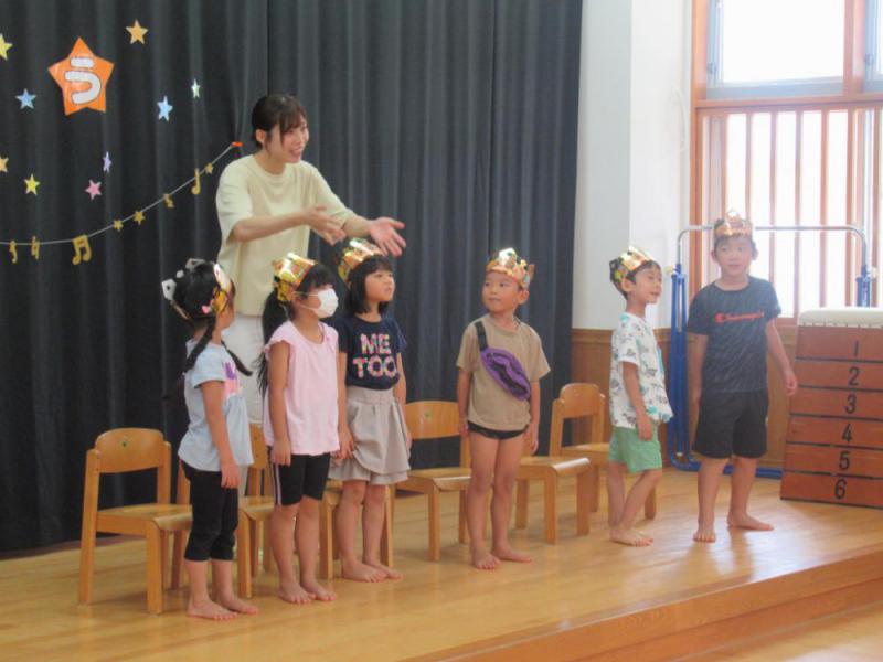 9月生まれの誕生会が行われました。9月はたくさんのお友だちが誕生日を迎えました。「ハッピーバースデー」の歌をプレゼントしお祝いしたり、誕生者のお友だちはみんなに得意なことをドキドキしながらも発表しました。最後は保育者の出し物「山の音楽家」を見て楽しみました。9月生まれのお友だちお誕生日おめでとうございます。