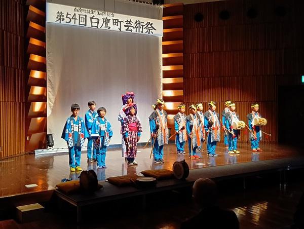 10月26日(土)、5年生が「第54回白鷹町芸術祭」に出演し、これまで総合的な学習の時間に取り組んできた「畔藤田植踊り」を披露してきました。たくさんのお客様を前に、少し緊張気味の子供たちでしたが、ステージでは堂々と発表することができました。 今年度も夜間練習でご指導いただきましたお師匠の皆様ありがとうございました。(10月17日、24日の様子) なお、子供たちは今週末に開催する学習発表会でも踊りを披露します。どうぞお楽しみに!