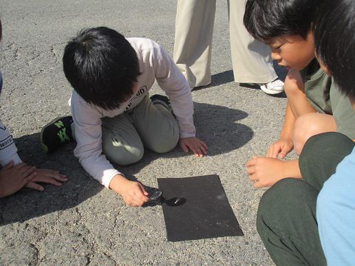 3年生、光を集めて黒い紙を燃やす実験です。 煙出てきた!うまそうなにおい!(カラメルのにおいでした!) 角度角度!うまく煙はでたかな? 4年生、今日は高玉芝居学習の2時間目。 かつらと刀を持ってきていただき、芝居のことについて話をお聴きしました。 なんと、座長さんは、この道50年だそうです。話に熱が入ります。 これは忍者が使う刀。つばの形が違います。 刀にそりはなく、 刀のつばを使って、お屋敷に侵入します。 みんな似合うね! 姫様、笑って笑って! 脱げそうだよ〜 余裕のMsん! 残り2時間、しっかり伝統芸能を学んでください!将来、ここから俳優が出るかな?